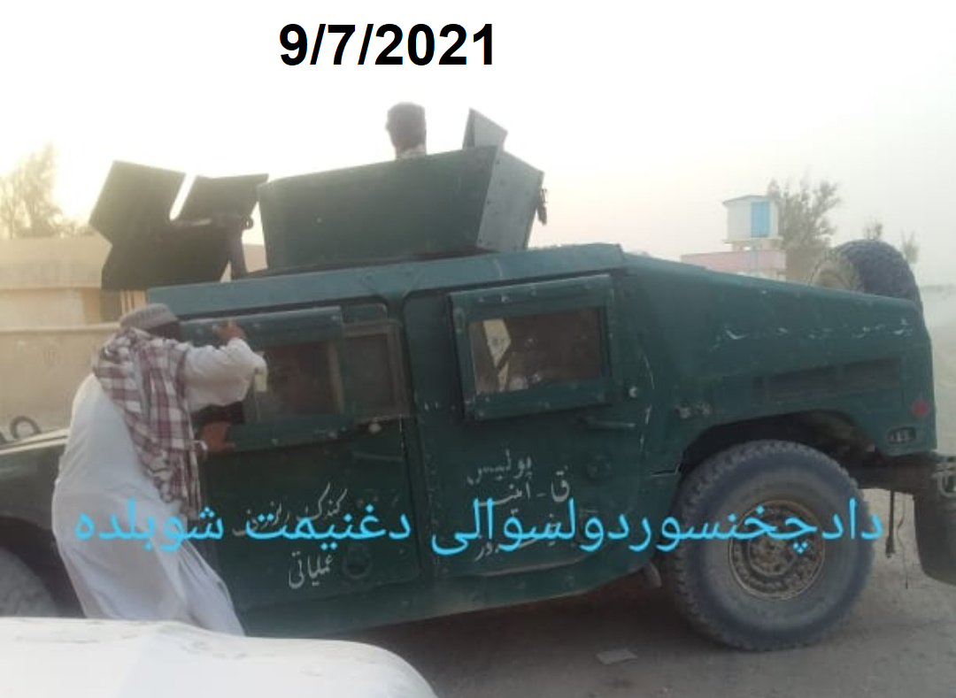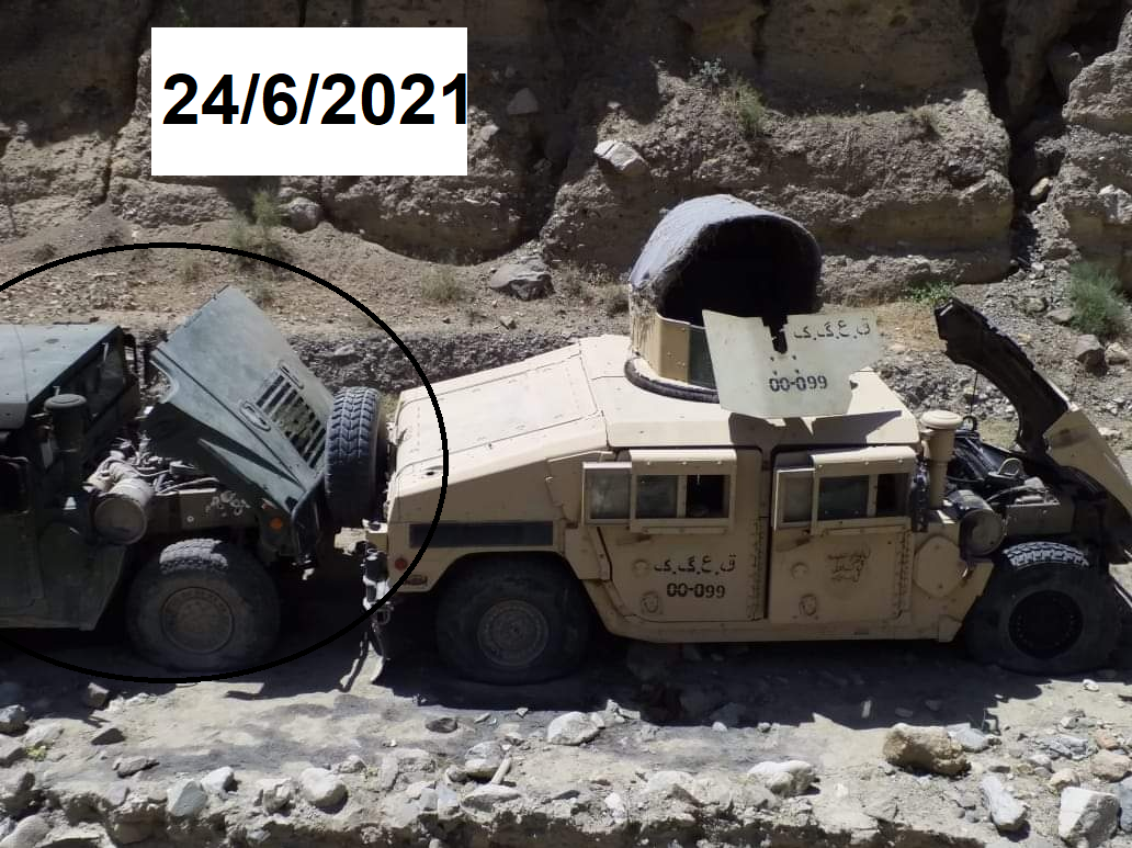 here. Not all equipment captured intact is operational at the time of capture, with many HMMWVs and Ford Rangers used as a source of spare parts to keep other vehicles running. When the degree of cannibalization is such that only a vehicle carcass remains, the equipment is not included in this list. The number of vehicles captured by the Taliban thus doesn't translate into an operational fleet of similar size. Small arms, ammunition, trailers, civilian vehicles and derelict vehicles are not included in this list. Entries are ordered by date whenever possible.