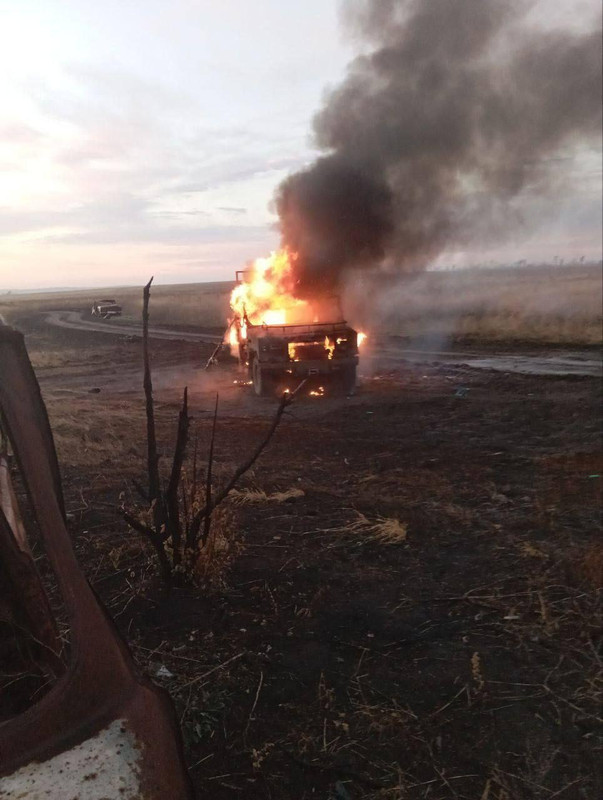 9 KrAZ-260 tanker: (1, destroyed) (2, 3, 4, 5, 6 and 7, destroyed) (1, damaged) (1, captured)